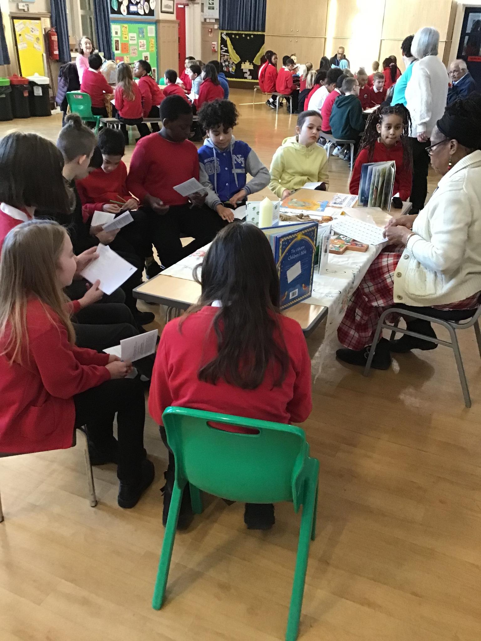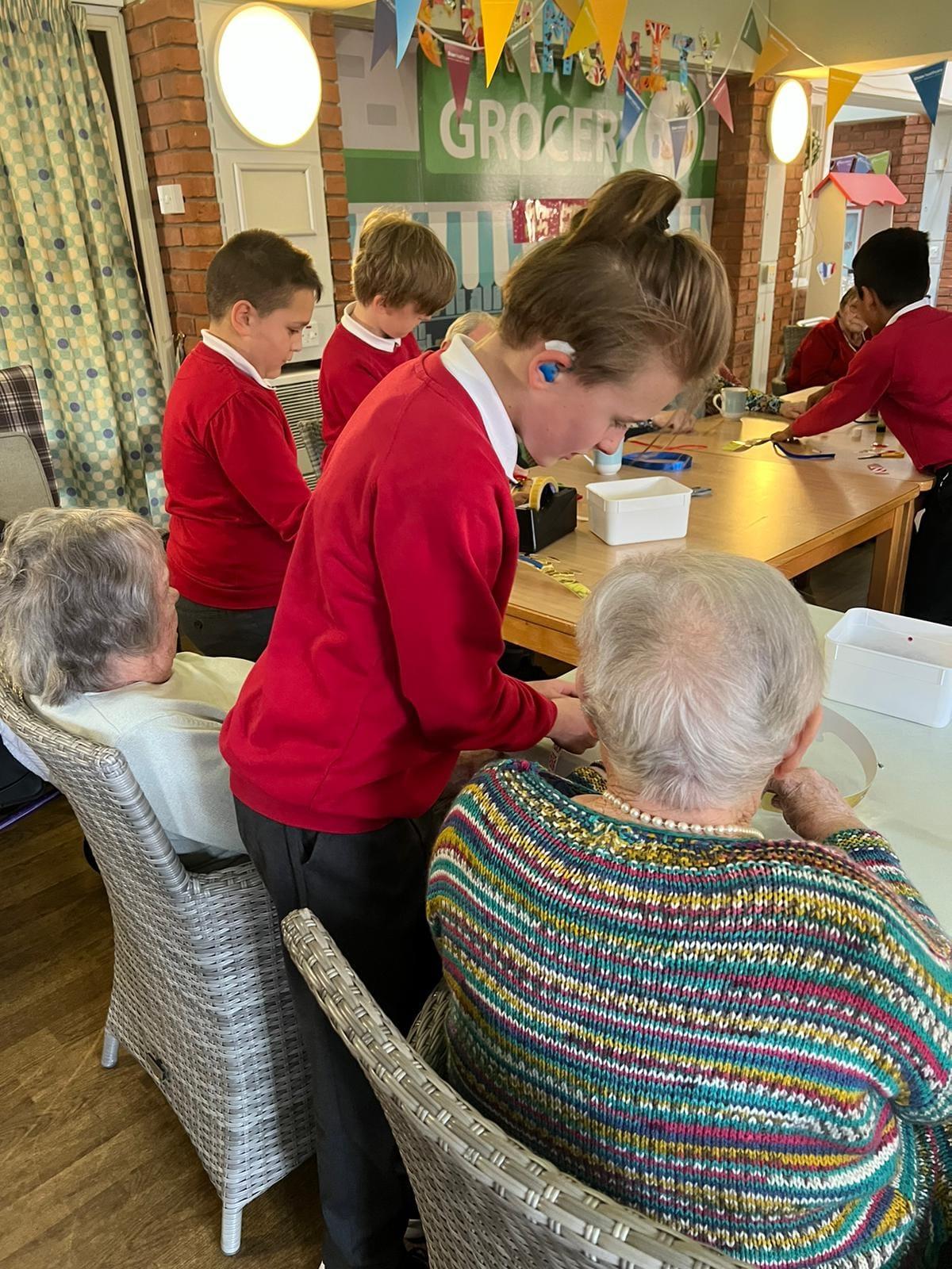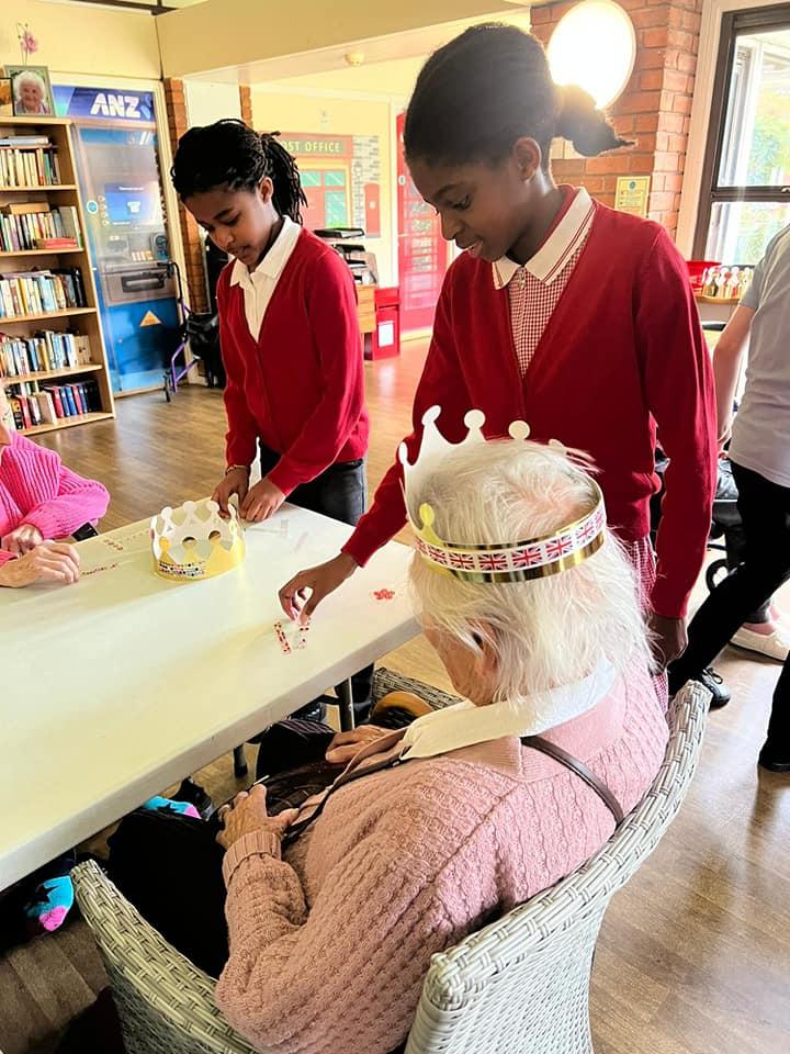 Some of our Year 6 children help the residents of Lancum House with their coronation preparations.