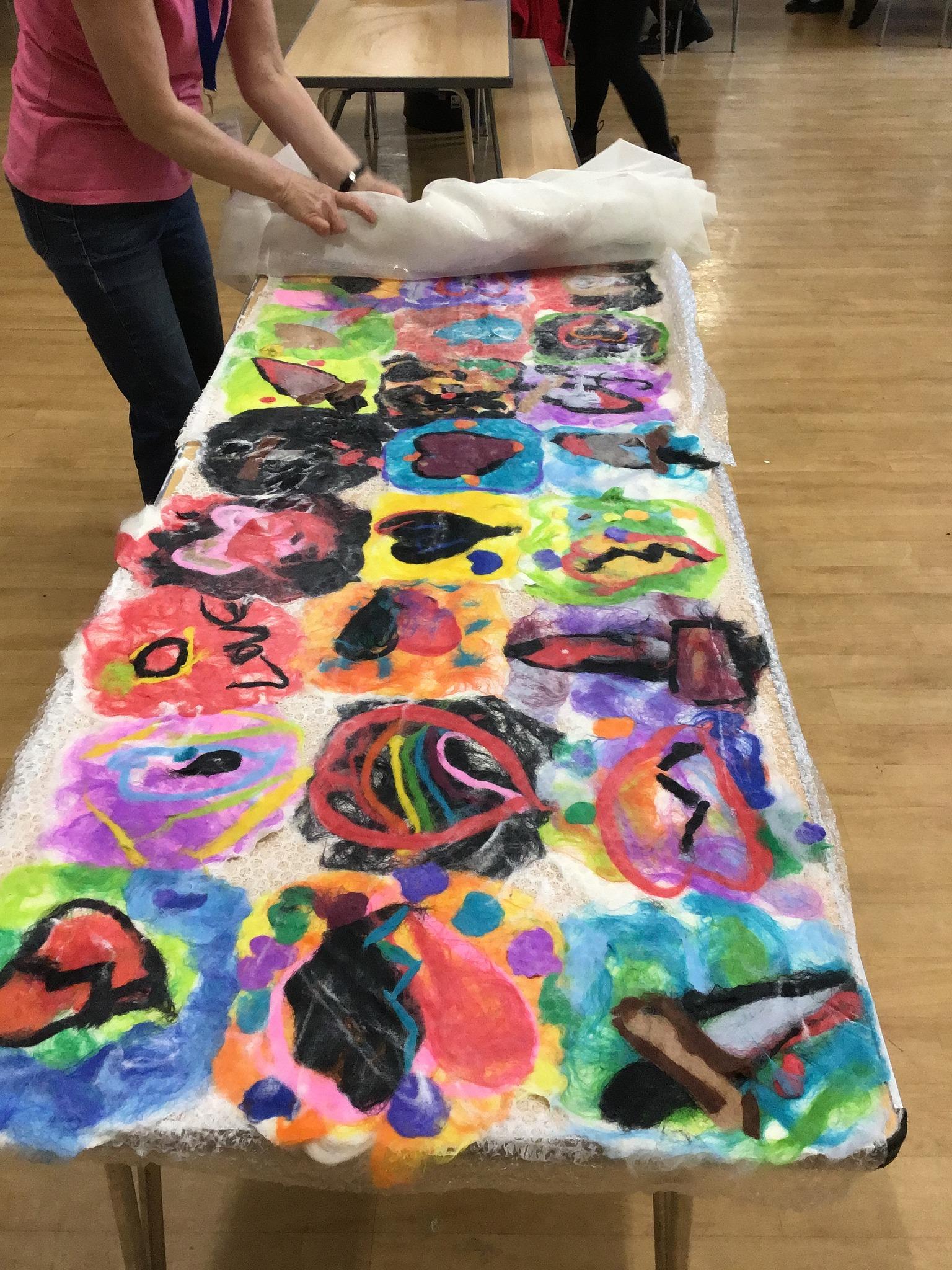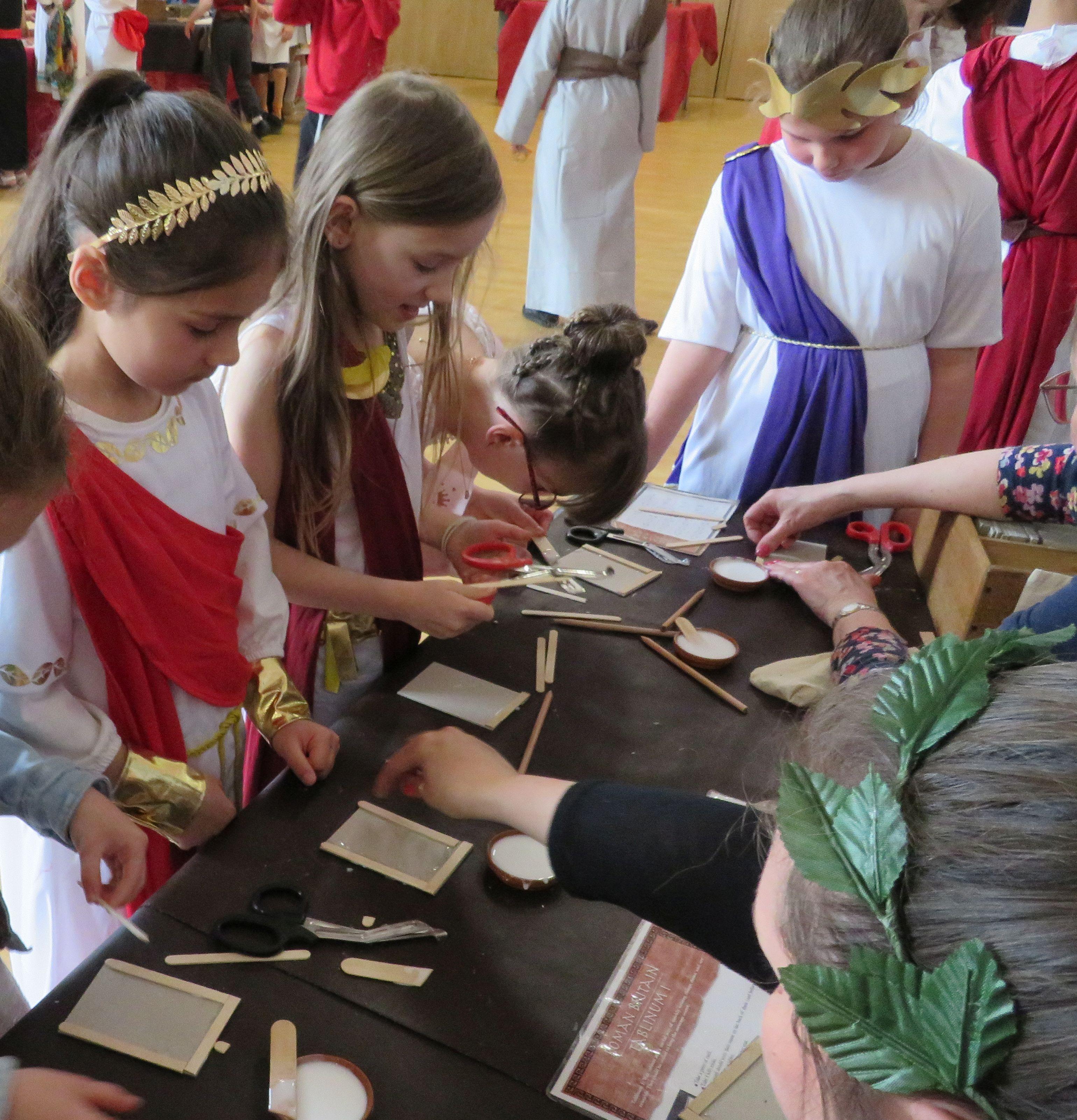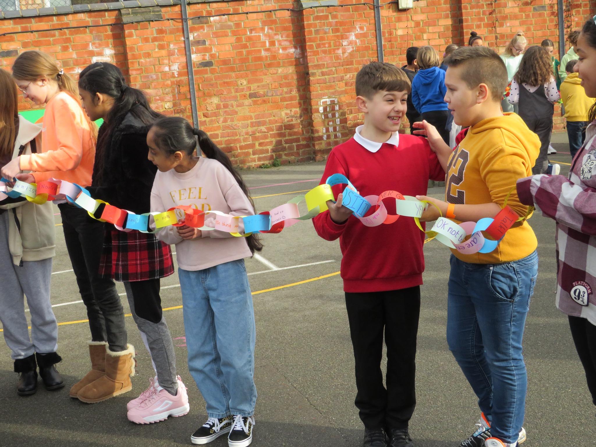 Some of our Year 6 children help the residents of Lancum House with their coronation preparations.