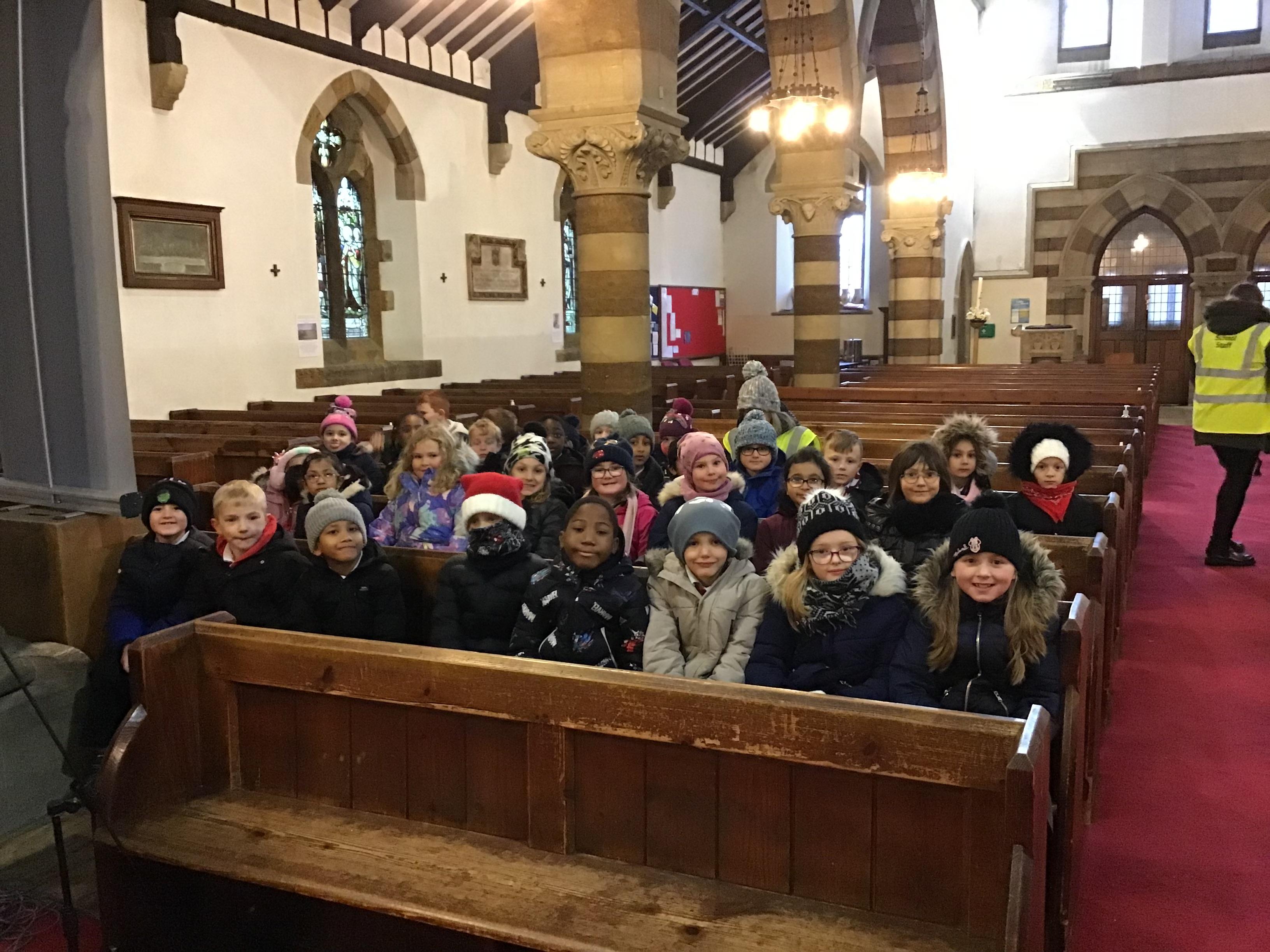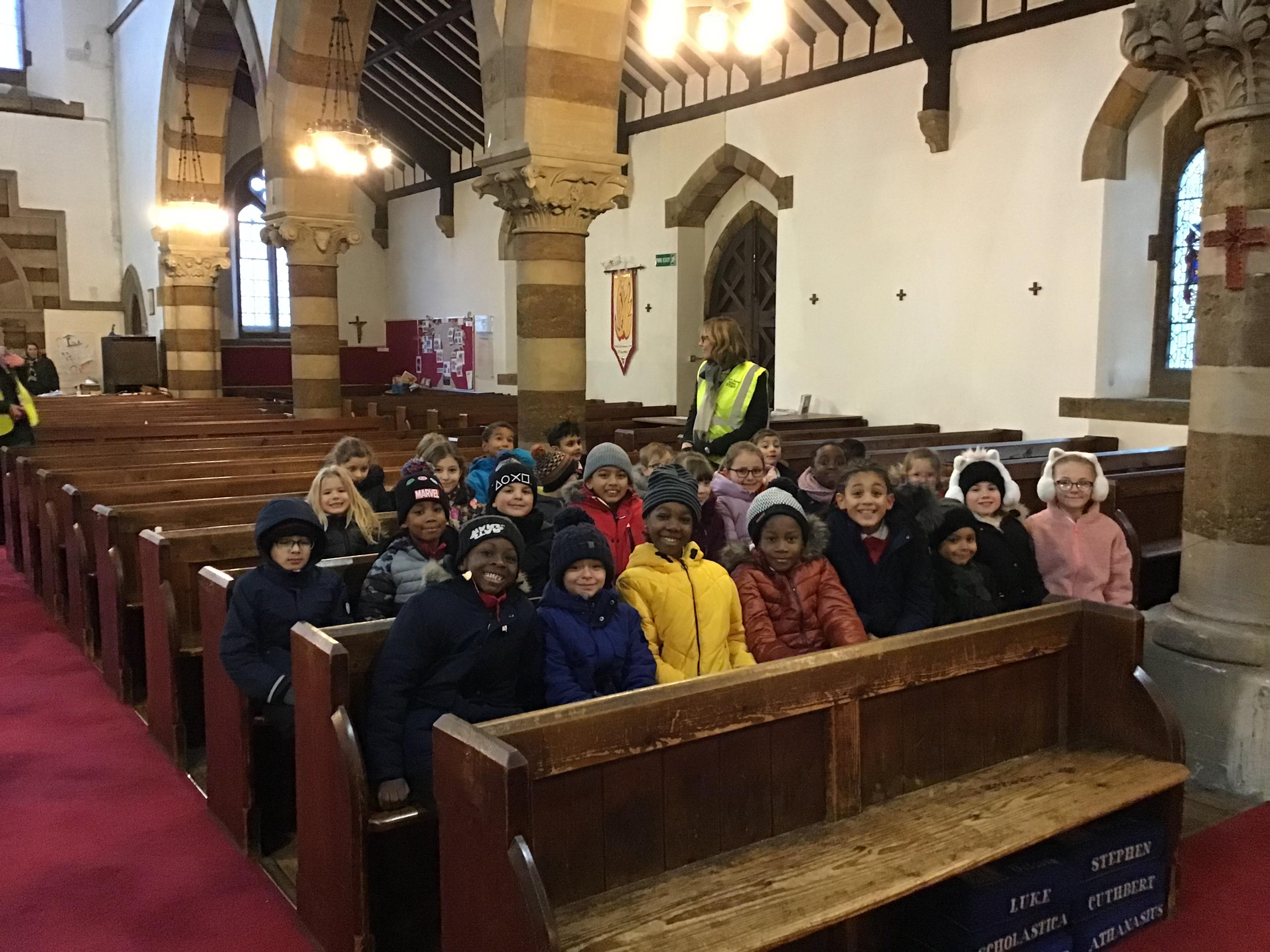 Year 3 children visit the local church as part of their "Light and Dark" topic theme