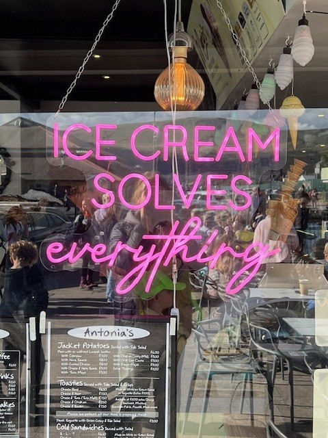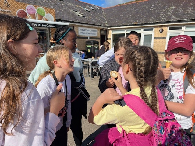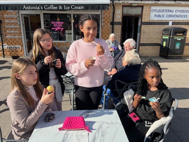 We have had a fabulous first day! The journey to the centre was through the beautiful Welsh hills and the weather couldn't have been better. It enabled us to have a great time on the beach where there were some impressive creations! Of course we had to have our ice-creams where the difficult decision of which flavour to have out of a choice of at least twenty had to be made.