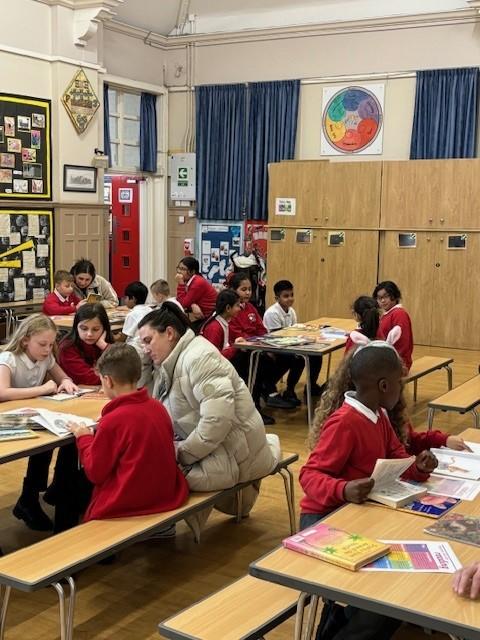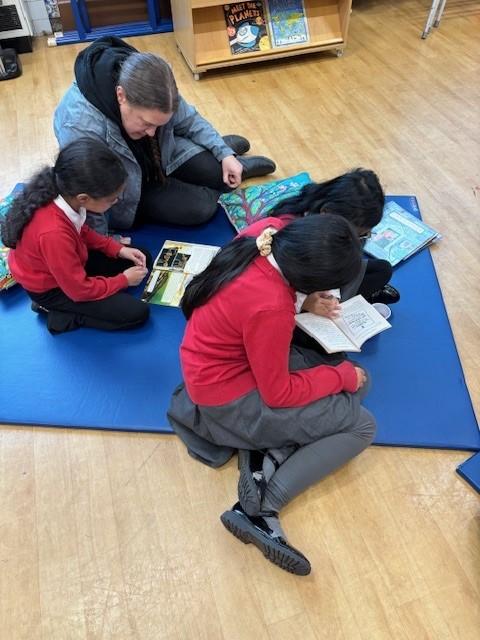 Reading takes place at least four times a week in a discreet session with a teacher or teaching assistant. These sessions include a range of activities to develop decoding, fluency and comprehension. These are detailed in the Reading Strategy. If children are working below their chronological reading age, targeted intervention and support is put into place. Children in all classes still have access to story time and have a class book for a sustained period: this ensures that reading is correctly modelled to children as well as giving them the opportunity to enjoy being read to! Each term, we display a list of the class text being read so that pupils and adults can talk about this.