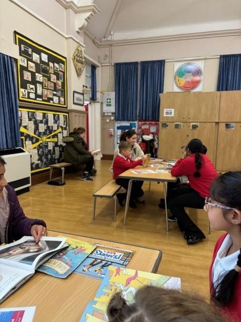 In addition to this, children visit the school library weekly to allow them free choice of their reading. Classes also have their own selection of books which children are welcome to choose from.